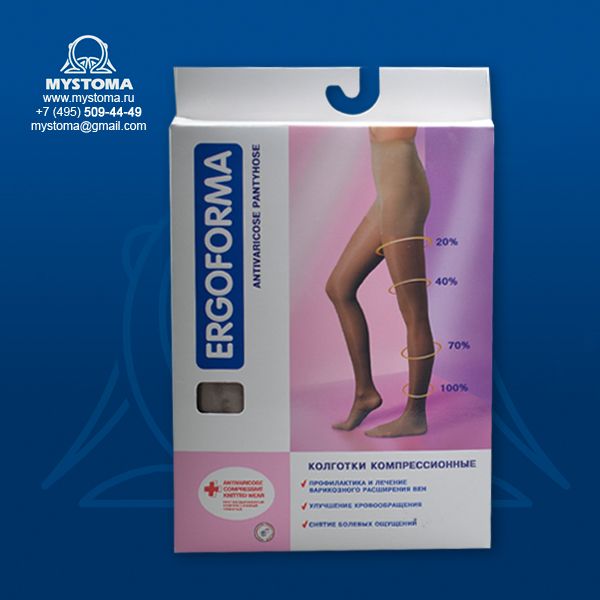 Компрессионные профилактические колготки Эргоформа - это итальянский антиварикозный трикотаж высшего качества. Колготки помогают предотвратить такие видимые признаки варикоза как отеки, тяжесть, усталость ног, сосудистые звездочки. Антиварикозные колготки Ergoforma (или Эргоформа) отлично поддерживают вены и придают легкость ходу. Профилактические антиварикозные колготки показано применять практически любой женщине. Посколько риск возникновения данного заболевания очень велик и с возрастом с ним сталкиваются все. Показания к применению антиварикозного трикотажа Эргоформа: - профилактика при наследственной предрасположенности к варикозу; - избыточный вес или проявления целлюлита; - беременность или при прием контрацептивов; - плоскостопие (поперечное или продольное); - сидячая или стоячая работа (в офисе, за компьютером, за прилавком, бортпроводницы и т.д.) - усталость в ногах, или сильные физические нагрузки; - длительные поездки или перелеты, - при частые запоры - ношение обуви на каблуках и т.д. Функции компрессионного трикотажа Эргоформа: - улучшение кровообращения и оттока крови от периферии к центру; - сохранение красивого внешнего вида ног женщины; - уменьшение отеков; - облегчение походки, уменьшение нагрузок на ноги; - минимизация риска тромбоза вен.