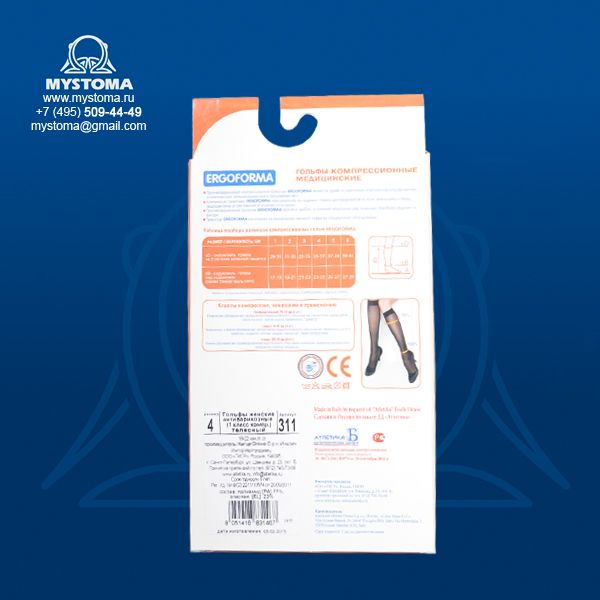 Противоварикозные гольфы Ergoforma 311 (1 класс компрессии) разработаны для профилактики и лечения из специального комбинированного материала, который дозировано сдавливает мышцы ног (18-22мм ртутного столба), компрессия составляет от 100 % в области самого узкого участка ноги ,до 40% в области верхней трети голени. Это способствует улучшению кровотока вен.