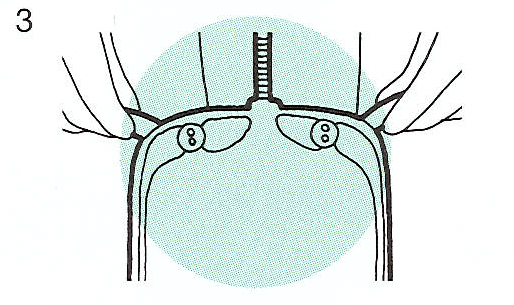 3. Закрепите мешок на ноге с помощью ремешков: пристегните мешок к ремешкам, вставив пуговицы в прорези мешка. Отрегулируйте длину ремешков. Не следует затягивать ремешки слишком туго, так как это может нарушить кровообращение. Если ремешки слишком длинные, обрежьте их ножницами. После стирки в воде при температуре 40 градусов ремешки дают усадку 2%.