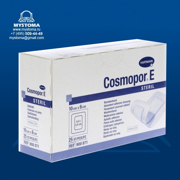 Ассортимент повязок Cosmopor E (отличия в размере и количеству штук в упаковке, но продаются и поштучно): 900870@ Cosmopor E steril cамоклеящиеся послеоперац. повязки: 7,2 х 5 см 50шт. (международная уп.) 900871@ Cosmopor E steril самоклеящаяся послеоперационная повязка 10 х 6см 25 шт. (международная уп.) 900873@ Cosmopor E steril самоклеящаяся послеоперационная повязка 10 х 8см 25 шт (международная уп.) 900874@ Cosmopor E steril самоклеящияся послеоперационная повязка 15 х 8 см 25 шт. (международная уп.) 900876@ Cosmopor E steril самоклеящияся послеоперационная повязка 20 х 10 см 25 шт. (международная уп.) 900877@ Cosmopor E steril самоклеящияся послеоперационная повязка 25 х 10 см 25 шт. (международная уп.) 900893 Cosmopor E steril самоклеящаяся послеоперационная повязка 10 х 8см 10 шт. (международная уп.) 900899 Cosmopor E steril самоклеящаяся послеоперационная повязка 15 х 9см 10шт. (международная уп.) 901019 Cosmopor E steril самоклеящаяся послеоперационная повязка 15 х 6см 25 шт. (русскоязычная уп.) 901020 Cosmopor E steril самоклеящаяся послеоперационная повязка 10 х 8см 25 шт. (русскоязычная уп.) 901025 Cosmopor E steril самоклеящаяся послеоперационная повязка 20 х 8 см 25шт. (русскоязычная уп.)