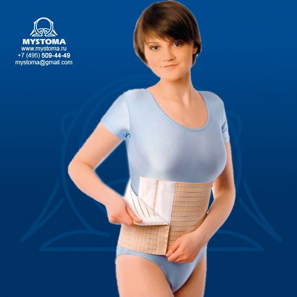 Абдоминальный бандаж - это широкий поддерживающий пояс из эластичного материала, который плотно обхватывает живот и фиксирует положение внутренних органов брюшной полости. Это помогает предотвратить возникновение послеоперационных грыж, ускоряет заживление ран и уменьшает болевые ощущения после операций. Так же ношение компрессионных бандажей часто назначают при травматических повреждениях в области живота. При изготовлении брюшного бандажа «ИНТЕКС» используются материалы, не вызывающие аллергии, такие как мононить, латекс, полиэфир, полипропилен (могут вызвать аллергические реакции индивидуального характера). А плотные полосы бандажа с промежутками разреженного полотна гарантируют нормальный воздухообмен, отведение влаги с поверхности кожи и защиту от раздражений. Доказано, что у больных после операций, которые носили в период реабилитации пояснично-крестцовые бандажи, менее заметны растяжения в зоне вмешательства, значительно реже происходит развитие послеоперационный грыжи, приходит в норму внутрибрюшное давление и не происходит опущения и смещения внутренних органов. Наиболее заметен данный эффект у пациентов с лишним весом, людей в возрасте и у тех, кто страдает недостаточно развитым корсетом из мышц. Абдоминальные послеоперационные бандажи предназначены для ношения в любое время года по назначению специалиста. Эластичная лента бандажа изготовлена в виде плотных полос, перемежающихся с промежутками разреженного полотна. Это обеспечивает кожное дыхание и возможность отведения влаги с поверхности кожи, а также правильный воздухообмен повязок, что необходимо для заживления ран. Основной лечебный эффект послеоперационных бандажей обеспечивается за счет создания внешнего давления и поддержки передней брюшной стенки.
