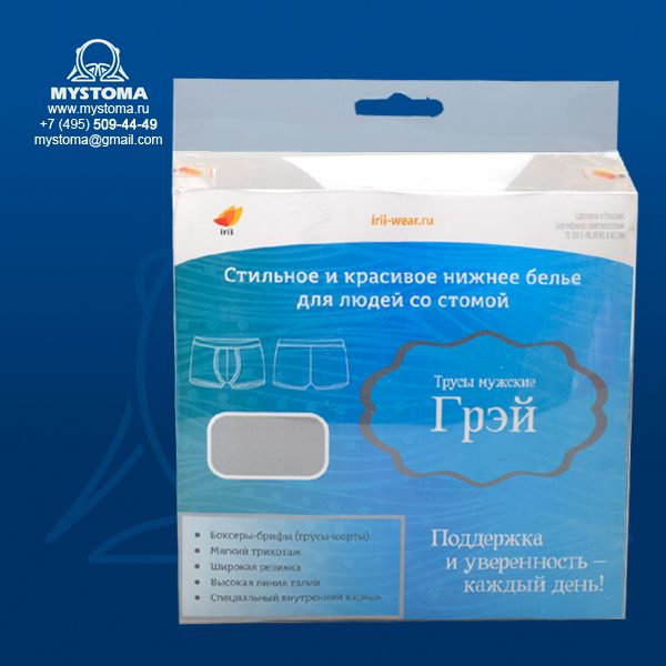 Боксеры-брифы или обтягивающие трусы-шорты - новая модель для стомированных мужчин от компании Ирии (Россия). Модель изготовлена из мягкого трикотажа, с широкой резинкой. Линия талия расположена достаточно высоко, чтобы полностью закрыть пластину калоприемника.