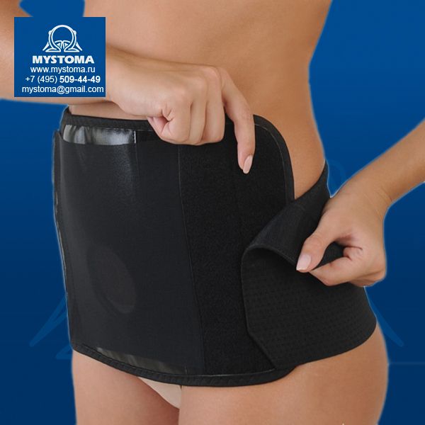 Универсальный бандаж - пояс с отверстием для стомы или дренажа артикул 336 рекомендован Министерством здравоохранения и социального развития РФ. Он используется для реабилитации стомированных пациентов и при использовании дренажных приспособлений. Бандаж фиксирует переднюю и боковые части брюшной стенки, поддерживает мышцы брюшного пресса в тонусе. Снижает риск возникновения болевых ощущений, жжения или зуда, связанных с раздражением кожи вокруг стомы или с усиленной перистальтикой кишечника. Предупреждает образование грыж. Разгружает собственные ткани брюшной стенки. Создает оптимальные условия для отведения кишечного содержимого или мочи. Фиксирует положение калоприемника, дренажных приспособлений, предотвращая их смещение во время движения. Равномерное компрессионное воздействие бандажей способствует улучшению кровообращения мышц и кожи передней брюшной стенки. Преимущества использования бандажа: - профилактика образования грыж, - снижение болевых ощущений, зуда и жжения, которые могут возникнуть после операции на перистомальной коже, - улучшает фиксацию калоприемника или мочеприемника, - снижает нагрузку на переднюю брюшную стенку, - способствует быстрому заживлению послеоперационных швов и рубцов, - равномерное компрессионное воздействие бандажей способствует улучшению кровообращения мышц и кожи передней брюшной стенки. Специальная конструкция и использованные материалы способствуют улучшению самочувствие пациента и облегчают уход за стомой:
