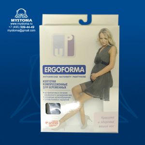 Для профилактики отеков, тромбофлебитов и других возможных осложнений от варикозной болезни вен, во время беременности можно использовать Ergoforma up 113 - специальные трикотажные колготки. Они создают компрессию 1 класса. Происходит ее неравномерное распределение снизу вверх: от щиколотки до паха. Благодаря компрессии на поверхностные вены происходит сброс венозной крови в глубокие вены, где клапанный аппарат значительно больше выражен, что улучшает венозный отток от нижней конечности.