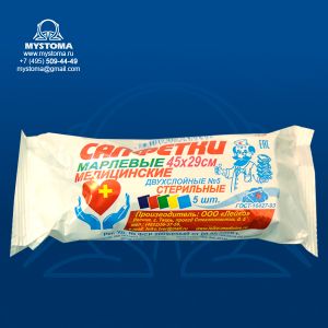 В нашем магазине Вы можете приобрести салфетки стерильные двухслойные необходимы при перевязке разнообразных ран и повреждений. Сложенные в несколько слоев ровные прямоугольники полосы отбеленной марли пропитывают для стерильности антисептическими растворами. Стерильность является обязательным условием для невнесения патогенной миклофлоры в рану и быстрого заживления тканей. Салфетки применяются для использования в качестве готовых операционно-перевязочных средств, для наложения повязок, осушения ран, при перевязках и операциях, для тампонады с целью остановки кровотечения и дренирования, закрепления перевязочного материала, давления на какую-нибудь часть тела (в основном, для остановки кровотечения), а также для защиты раны или измененной поверхности кожи от воздействия внешней среды - фиксируются бинтом или медицинским пластырем. Салфетки марлевые медицинские стерильные производятся из специальной, отбеленной без хлорных компонентов марли, обладают высокой способностью к впитыванию влаги и жидкостей, не вызывают аллергий. Особый способ сложения слоев (краями внутрь) дает гарантию отсутствия мелких осыпавшихся волокон. Марлевые салфетки пригодяться в любой бытовой аптечке, так являются необходимым средством как первой помощи, так и в дальнейшем лечении. Соответствуют ГОСТУ 16427-93. Плотность: 36 г/м2. Размер: 45*29 см. В упаковке 5 штук.