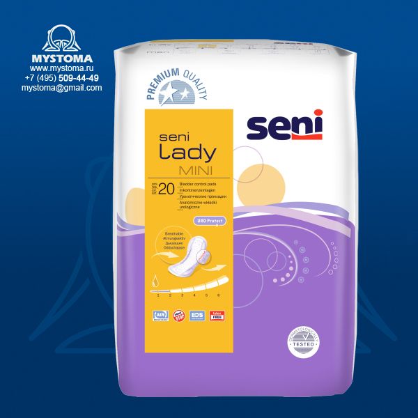 "Seni lady" Mini по 20 шт «Дышащие» урологические прокладки Seni Lady созданы специально для женщин, которые ценят удобство, комфорт и ведут активный образ жизни. Прокладки обеспечивают надежную защиту и незаметны под одеждой. Краткая характеристика