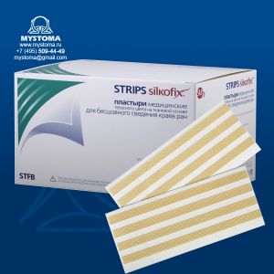 Показания : Адгезивные стерильные пластыри предназначены для сведения краев поверхностных ран, хирургических разрезов и разрывов кожи вместо и/или в сочетании с нитями или после раннего снятия швов. Размер полоски: 13*102 мм. В индивидуальной упаковке 6 штук. Свойства : Воздухопроницаемые Ассортимент пластырей для бесшовного соединения ран Silkofix Stripe: S37 Silkofix Strips адгезивные стерильные пластыри для бесшовного сведения краев ран13*102 мм (6 шт) S38 Silkofix Strips адгезивные стерильные пластыри для бесшовного сведения краев ран 26*102 мм (4шт) S39 Silkofix Strips адгезивные стерильные пластыри для бесшовного сведения краев ран 4*38 мм (8 шт) S40 Silkofix Strips адгезивные стерильные пластыри для бесшовного сведения краев ран 4*76 мм (8 шт) S41 Silkofix Strips адгезивные стерильные пластыри для бесшовного сведения краев ран 6,4*102мм(10шт) Техника наложения : Проверьте целостность стерильной упаковки. После остановки кровотечения, промойте края раны, высушите рану стерильной салфеткой. Способ №1. Наклейте стрип перпендикулярно одной стороне раны, зафиксируйте, осторожно потяните, сведите один край с другим. Наклейте все стрипы тем же способом, как указано в п.1, пока рана не будет полностью закрыта. Способ №2. Наложите 2 стрипа по обе стороны вдоль раны. Наклейте третий стрип перпендикулярно одной стороны раны, зафиксируйте, осторожно потяните, сведите один край раны с другим. Наклейте следующий стрип тем же самым способом, как указано в п.2., пока рана не будет должным образом закрыта. Чтобы закрепить зону сведения шва, наложите два стрипа параллельно друг другу сверху. Примечание : Для предотвращения риска инфекции раны следует наложить бактерицидную повязку.